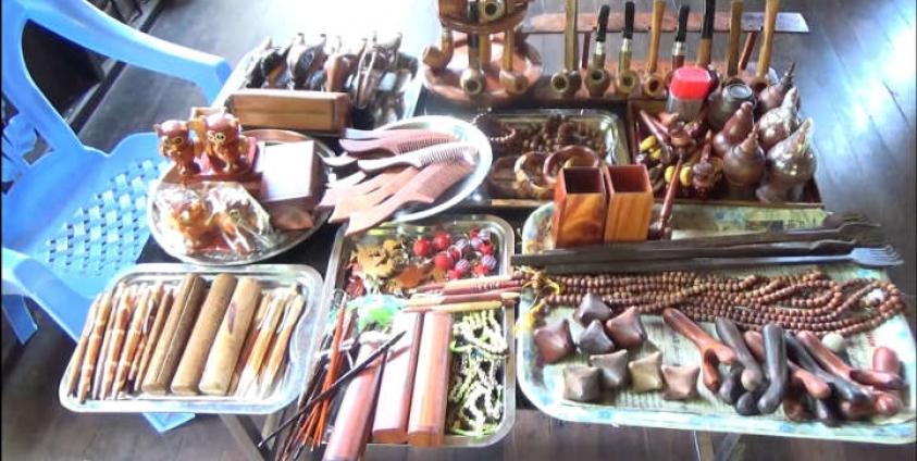 “ကျောက်သင်ပုန်းလုပ်ငန်းကတော့ လုပ်တဲ့သူနည်းနည်းပါးပါးပဲ ကျန်တော့တယ်၊ ဒါပေမယ့် အဲဒီသင်ပုန်းကျောက်တွေနဲ့ပဲ အနုပညာပန်းပုရုပ်တွေ ပြောင်းပြီးလုပ်ကြပြန်တယ်၊ သစ်သားဆင်စွယ်လုပ်ငန်း တွင်ကျယ်လာတယ်၊ ငွေကြေးတတ်နိုင်သူတွေ ဝယ်ကြတာပေါ့၊ တကယ့်ဆင်စွယ်အစစ်လိုပဲ ထင်ရပါတယ်၊ တော်တော်လက်ရာမြောက်တယ်” ဟု ၄င်းက ဆက်ပြောသည်။
