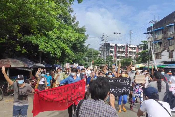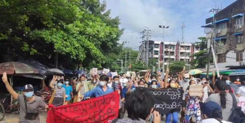 ရန်ကုန်မြို့က စစ်အာဏာရှင်ဆန့်ကျင်ရေး ဆန္ဒပြသပိတ်စစ်ကြောင်းများကို အာဏာသိမ်းစစ်ကောင်စီက လာရောက်ဖြိုခွင်း၊ ဖမ်းဆီးမှု လုပ်နေသောလည်း နေ့စဉ်ရက်ဆက် ချီတက်ဆန္ဒပြနေမှုများ ပြုလုပ်နေကြသည်။