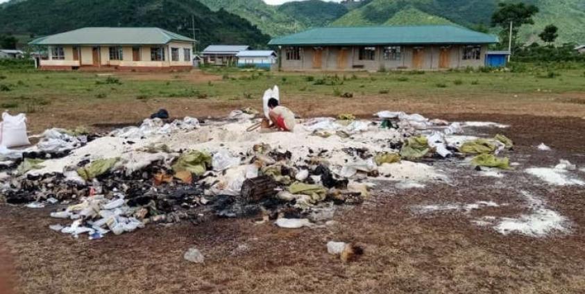ရှမ်း-ကရင်နီ နယ်စပ် မိုးဗြဲမြို့အနီးရှိ လွယ်ယင်းတောင်ခြေမှာ စစ်ဘေးရှောင်ပြည်သူအတွက် ပေးပို့ထားတဲ့ ဆန်၊ ဆေးဝါးကို အကြမ်းဖက်စစ်ကောင်စီတပ်က ဒီကနေ့ ဇွန်လ ၁၁ ရက်နေ့မှာ မီးရှို့ဖျက်ဆီးလိုက်တယ်လို့ သိရပါတယ်။