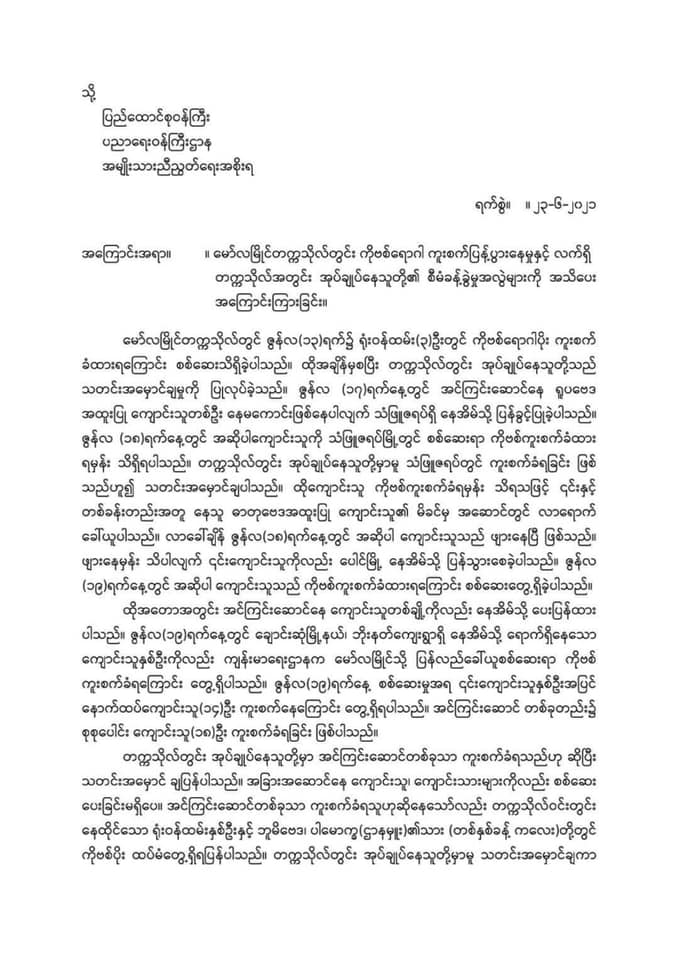 မော်လမြိုင်တက္ကသိုလ်အတွင်း ကိုဗစ်ရောဂါကူးစက်ခံရမှုကို သတင်းအမှောင်ချသဖြင့် အမျိုးသားညီညွတ်ရေးအစိုးရထံ တိုင်ကြား