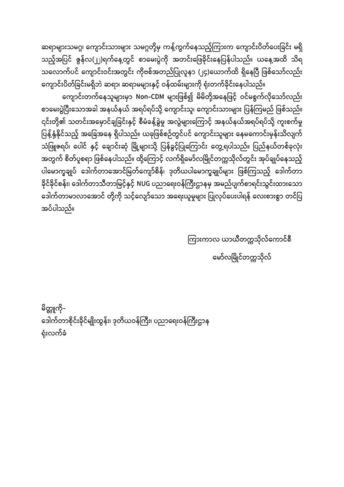 ယင်းအခြေအနေအပေါ် မော်လမြိုင်တက္ကသိုလ်ဆရာများသမဂ္ဂက ရှုံ့ချကြောင်း ကြေငြာချက်တရပ် ထုတ်ပြန်ခဲ့သည်။