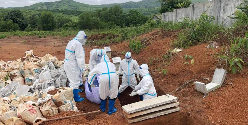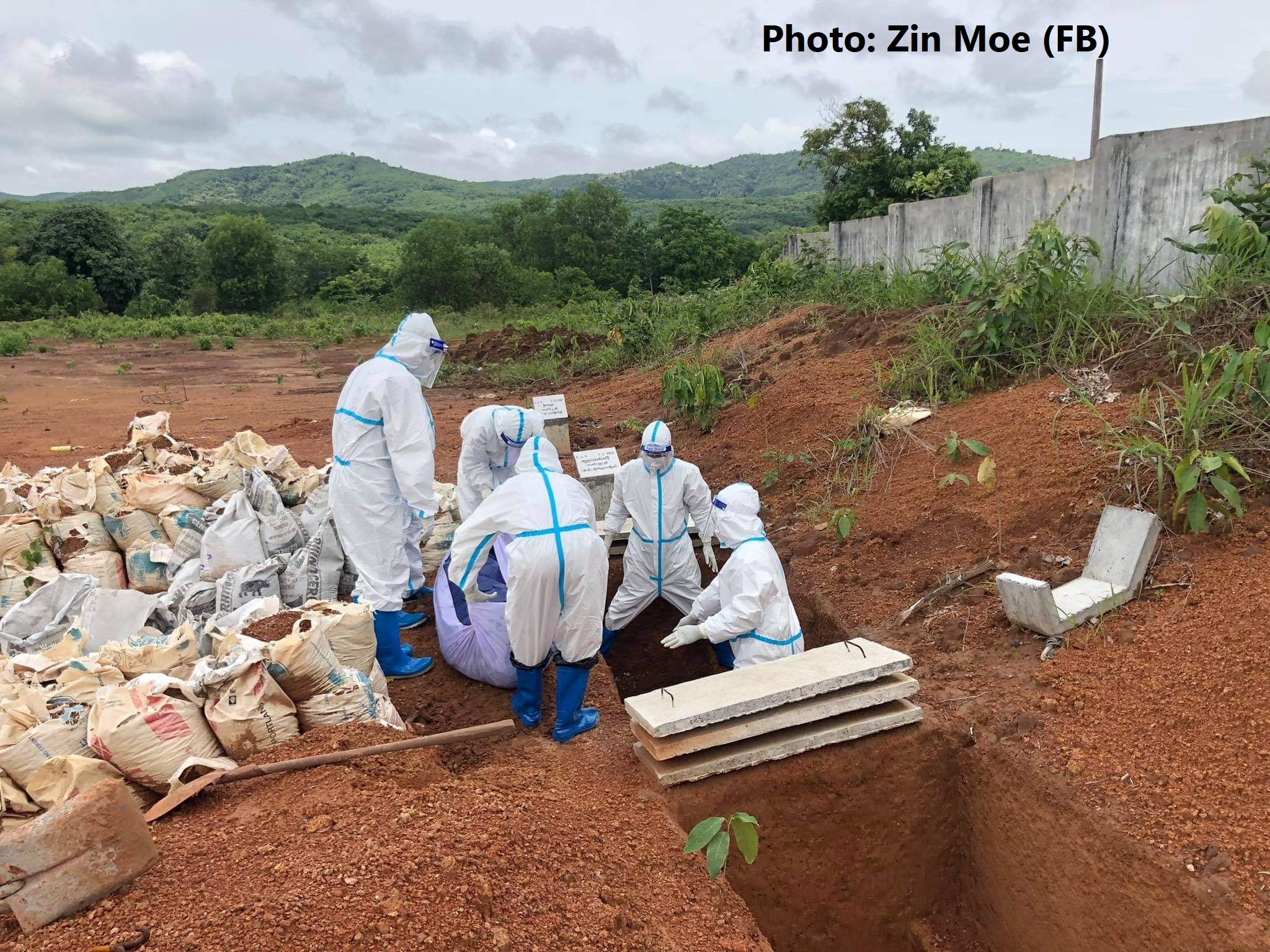 Photo - Covid-19 ရောဂါကြောင့် ကွယ်လွန်သွားသူ ဟိန္ဒူဘာသာဝင်တစ်ဦးအား လူမှုအဖွဲ့အစည်းက သဂြိုလ်ပေးနေစဉ် (ဇင်မိုး(FB)