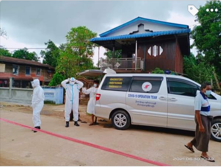 ကိုဗစ်ပိုးကူးစက်မှု ထပ်မံဖြစ်ပွားလာသည့်အပေါ် မြို့နယ်ရှိ ကျေးရွာအသီးသီးတွင် ကျန်းမာရေးလမ်းညွှန်ချက်များ ထပ်မံဆောင်ရွက်လျက်ရှိပြီး မြို့နယ်ချင်းဆက်လမ်းများတွင် ရောဂါကာကွယ်ထိန်းချုပ်နိုင်ရန် ကျန်းမာရေးစစ်ဆေးလမ်းညွှန်မှုများ လုပ်ဆောင်နေသည်ဟု ကျေးရွာအုပ်ချုပ်ရေးမှူးများက ပြောသည်။