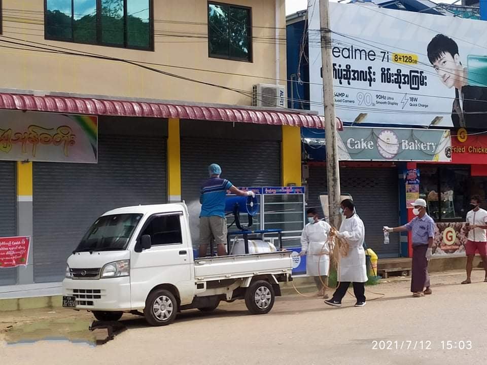 ယမန်နေ့ ဇူလိုင် ၁၂ ရက်နေ့တွင် မြို့နယ်စစ်ကောင်စီဥက္ကဌအား ကိုဗစ်ပိုးစစ်ဆေးသည့်ကိရိယာဖြင့် စစ်ဆေးရာတွင် COVID-19 ပိုးတွေ့ရှိခဲ့ခြင်းဖြစ်သည်ဟု အမည်မဖော်လိုသူ လူမှုကယ်ဆယ်ရေးအဖွဲ့ဝင်တစ်ဦးက ကေအိုင်စီသို့ ပြောသည်။