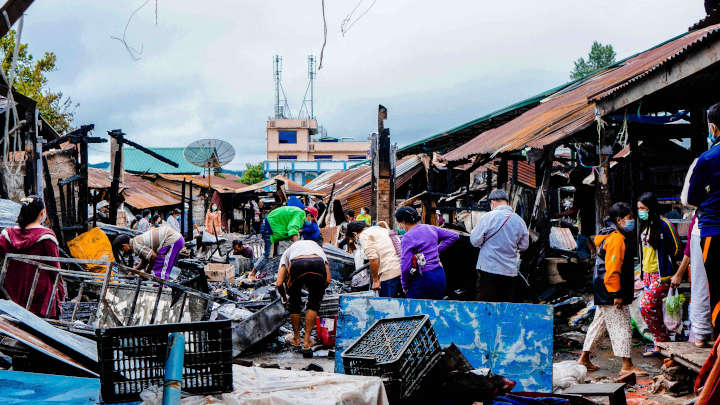 မီးလောင်သွားသည့် စျေးဆိုင်များတွင် တိုင်းရင်းဆေးဆိုင်၊ ဆန်ဆိုင်၊ လျှပ်စစ်ပစ္စည်း၊ အထည်ဆိုင်များနှင့် ခေါက်ဆွဲဆိုင်များပါဝင်သည်ဟု ဒေသခံတစ်ဦးက အတည်ပြုပြောသည်။