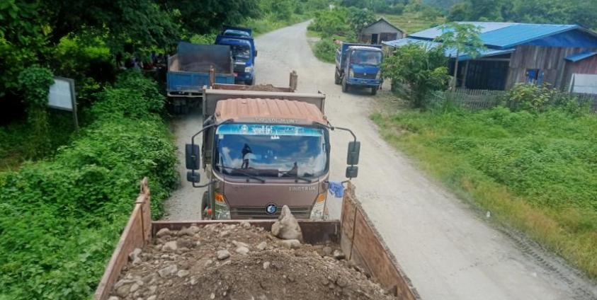 မိုးညှင်းမြို့ အောက်စီဂျင်စက်ရုံ တည်ဆောက်ရေးအတွက် လိုအပ်သည့် သဲကျောက်နှင့် ဖို့မြေအတွက် မိုးညှင်းမြို့နယ်ကားသမားများ စုပေါင်းလှူဒါန်း