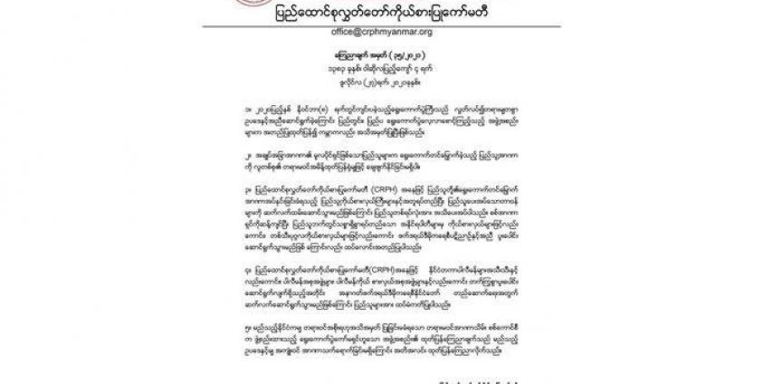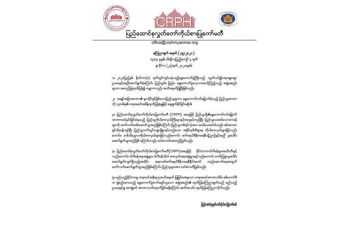 ပြည်သူ့အာဏာကို လူတစ်စုရဲ့တရားမဝင်အမိန့်နဲ့ မချေဖျက်နိုင်ဘူးလို့ CRPH ထုတ်ပြန်