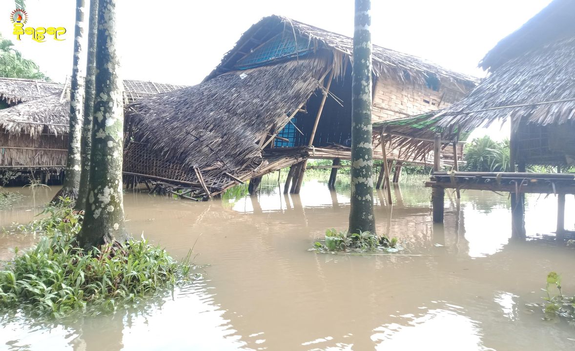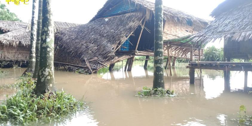 ရခိုင်ပြည်နယ်၊ ဘူးသီးတောင်မြို့ လမ်းမကျောင်း စစ်ဘေးရှောင်စခန်းမှ ရေနစ်မြုပ်ခံထားရသည့် အိမ်ထောင်စု ၃၈ စုမှာ စားဝတ်နေရေးခက်အခဲဖြစ်နေပြီး အကူအညီလိုအပ်နေကြောင်း စခန်းတာဝန်ခံ ဦးဦးကျော်ဝင်းက နိရဥ္စရာသတင်းဌာနသို့ ပြောသည်။