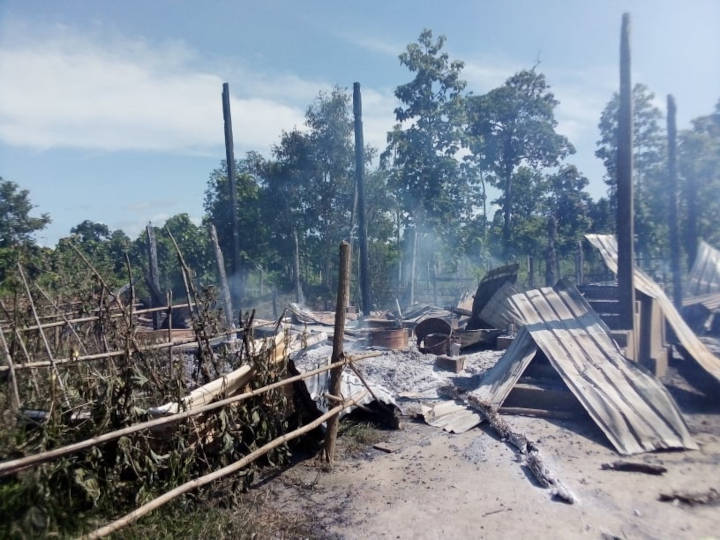 စစ်သည်အင်အား ၅၀ ခန့်ပါ စစ်ကြောင်းသည် အတူပါလာသူ ဒလန် (စစ်ကောင်စီသတင်းပေး) က ယင်းစိုက်ခင်းနှင့် တဲတွင် PDF များဝင်ထွက်မှုရှိသည်ဟုဆိုကာ သတင်းပေးသည့်အတွက် သြဂုတ်လ ၃ ရက် နံနက် ၁၀ နာရီအချိန်ခန့်က လာရောက်မွှေနှောက်ရှာဖွေပြီး မီးရှို့ခဲ့ခြင်းဖြစ်သည်ဟု ဒေသခံက ပြောသည်။