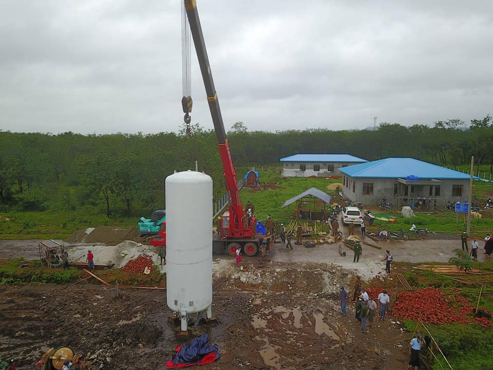 သံဖြူဇရပ်မြို့နယ် အောက်စီဂျင်စက်ရုံဖြစ်မြောက်ရေး ဆပ်ကော်မတီ ဘဏ္ဍာရေးတာဝန်ခံ ဦးထွန်းမြင့်ကျော် (ခေါ်) နိုင်မင်းလတ်က “စက်ပစ္စည်းတွေလည်း အကုန်ရောက်နေပြီး ဆင်စရာရှိတာလည်းဆင်နေပါပြီး ရုံးကလည်း ဆောက်နေပြီးဆိုတော့ ၄၀/၆၀ ရာနှုန်းလောက်တော့ ပြီးနေပြီ၊ စက်က ၂ မျိုးဆိုတော့ နေရာကလည်း ၂ နေရာပေါ့ အများဆုံးတော့ ဒီလကုန်လောက်ဆို လည်ပတ်နိုင်တော့မယ်ထင်တယ်” ဟု ပြောသည်။