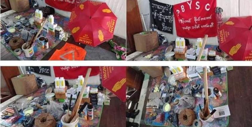 စစ်ကောင်စီ သတင်းထုတ်ပြန်ချက်တွင် ၄၄ လမ်း၊ တိုက်အမှတ် ၁၆၊ ၄ လွှာတွင် ဖောက်ခွဲရေးပစ္စည်းလုပ်ရာတွင် အသုံးပြုသည့် ပစ္စည်းများ သိုဝှက်သိမ်းဆည်းထားသည်ဟု သတင်းရသဖြင့် ရှာဖွေခဲ့ကြောင်း ဖော်ပြထားသည်။