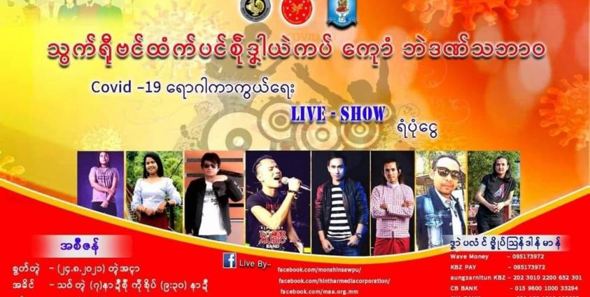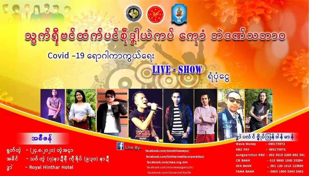 ကိုဗစ်နှင့် သဘာဝဘေးဒဏ်အကူအညီရံပုံငွေ မွန်အဆိုတော်များ ယနေ့ညတွင် Live Show သီဆိုထုတ်လွှင့်မည်