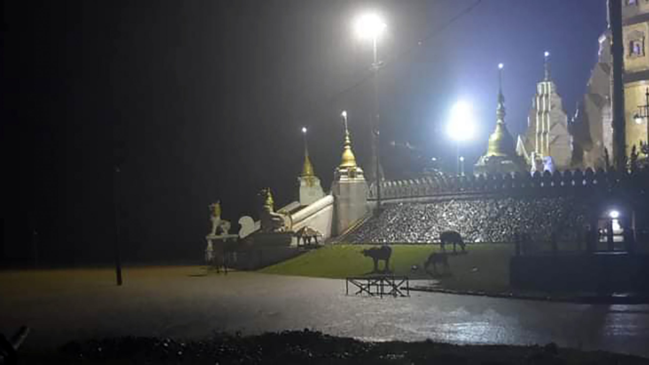 “ဦးဇင်း ဒီမှာ ၁၃ နှစ်ကျောင်းထိုင်တာ ဒါပထမဆုံး ဒီလောက်ကြီးတာပါ။ ခါတိုင်းထက် ၁၀ ပေလောက်ပိုလာတယ်။ ကောင်းမှုလုံဘုရားစေတီ တောင်ဘက်ချောင်းဖက်မုခ်က ခြင်္သေ့ခြေရင်းရောက်တာ ၁၃ နှစ်မှာ ပထမဆုံးပါ။” ဟု မန်ပန်ဆရာတော်က မိန့်ကြားသည်။