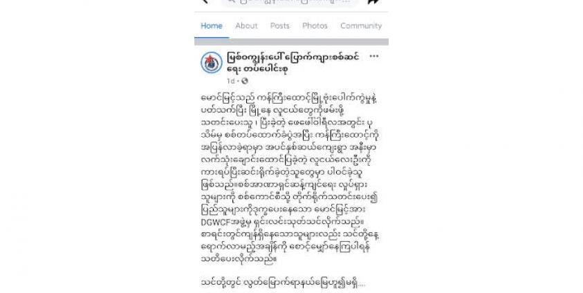 စစ်အာဏာရှင်ဆန့်ကျင်ရေး လှုပ်ရှားသူများကို စစ်ကောင်စီထံ တိုက်ရိုက်သတင်းပေး၍ ပြည်သူများကို ဒုက္ခပေးနေသော ဦးမောင်မောင်မြင့်အား ရှင်းလင်းသုတ်သင်လိုက်ကြောင်း သြဂုတ်လ ၂၉ ရက်နေ့ မွန်းလွဲပိုင်းတွင် DGWCF အဖွဲ့က ၎င်းတို့၏ လူမှုကွန်ရက်စာမျက်နှာမှတစ်ဆင့် သတင်းထုတ်ပြန်သည်။