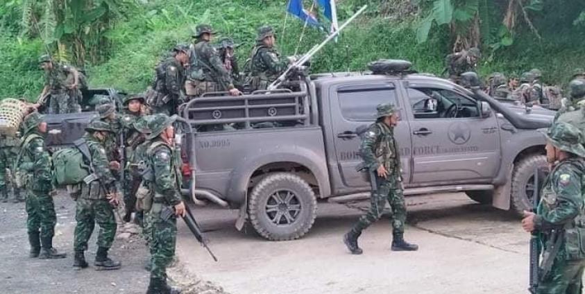 အလားတူပဲ ပြီးခဲ့တဲ့ မေလ ၉ ရက်နေ့တုန်းကလည်း နယ်ခြားစောင့်တပ်သား ၁ဝဝ ခန့်ဟာ မြိုင်ကြီးငူဒေသမှ သံလွင် မြစ်ကိုဖြတ်ကာ စစ်ကောင်စီတပ်နဲ့ ကရင့်အမျိုးသားအစည်းအရုံး ကေအဲန်ယူတပ်ဖွဲ့အကြား တိုက်ပွဲဖြစ်ပွားနေတဲ့ မူတြော် (ဖာပွန်) ခရိုင်၊ KNLA တပ်မဟာ (၅) နယ်မြေထဲသို့ ဝင်ရောက်နေတဲ့ ဗီဒီယိုမှတ်တမ်းတွေ လူမှုကွန်ရက်ပေါ်မှာ ပျံ့နှံ့ခဲ့ပါတယ်။ အဲဒီနေ့မှာပဲ ပစ်ခတ်မှုအချို့ဖြစ်ပွားပြီး နယ်ခြားစောင့်တပ် တပ်ဖွဲ့ဝင်အချို့ ထိခိုက်ကျဆုံးမှုရှိခဲ့တယ်လို့ ဒေသတွင်း သတင်းအရင်းအမြစ်တွေအရ သိရပါတယ်။