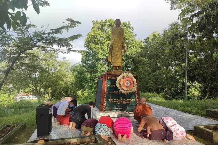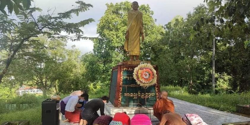 အမ်းလူငယ်မျိုးဆက်သစ်ကွန်ယက်အဖွဲ့မှ ဦးဆောင်ကာ နံနက် ၇ နာရီခန့်က ဆရာတော်၏ရုပ်ထုရှေ့၌ ပန်းခွေချဂါရဝပြုခဲ့ပြီး ၉ နာရီခန့်တွင် ပန်းခွေများရုပ်သိမ်းခံလိုက်ရခြင်းဖြစ်သည်ဟု အမ်းမျိုးဆက်သစ်ကွန်ယက်မှ တာဝန်ရှိသူတစ်ဦးက DMG ကို ပြောသည်။