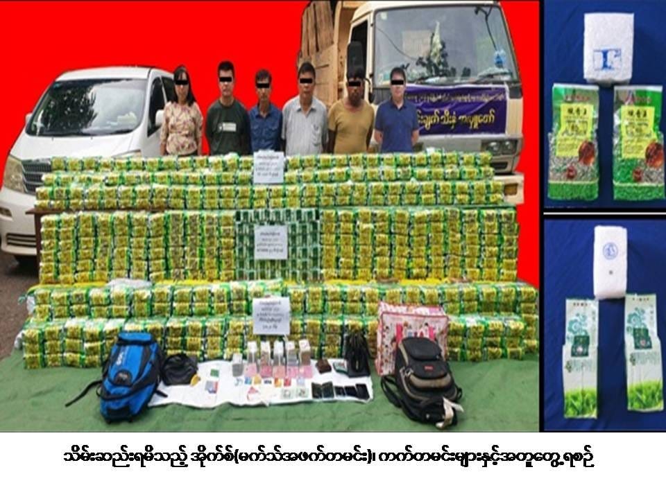 ပြီးခဲ့သည့် စက်တင်ဘာလ ၁၀ ရက်နေ့ နံနက် ၁၁ နာရီအချိန်ခန့်က စစ်တောင်းတံတားဘက်မှ ကျိုက်ထိုမြို့ဘက်သို့ မြင့်ကို (၅၄) နှစ် မောင်းနှင်၍ ဒေါ်မီမီအေး (ခ) မီမီအေးကျော် (၆၂) နှစ် လိုက်ပါလာသည့် Alphard မော်တော်ယာဉ်မှ ဦးဆောင်ပြီး စိုးသူရ (၃၆) နှစ် မောင်းနှင်၍ မင်းထင် (၅၂) နှစ်နှင့် စောမြင့် (၅၉) နှစ်တို့လိုက်ပါလာသည့် Tipper အဖြူရောင် ၆ ဘီးယာဉ်တို့အား စစ်ဆေးရှာဖွေရာ Tipper မော်တော်ယာဉ်၏နောက်ခန်းတွင် စားသောက်သီးနှံများဖြင့် ဖုံးအုပ်သယ်ဆောင်လာသည့် ဆာလာအိတ် ၅၂ အိတ်အတွင်းမှ ဒေသကာလတန်ဖိုးငွေကျပ် ၄၁ ဒသမ ၁၇၅ ဘီလီယံ တန်ဖိုးရှိအိုက်စ်(Methamphetamine) ၁,၀၀၀ ကီလို၊ ကက်တမင်း (Ketamine) ၄၇ ကီလိုနှင့် Alphard မော်တော်ယာဉ်အတွင်းမှ ငွေကျပ် ၅၁၇ ဒသမ ၂၈ သိန်းတို့ သိမ်းဆည်းရမိခဲ့သည်ဟု ဆိုသည်။