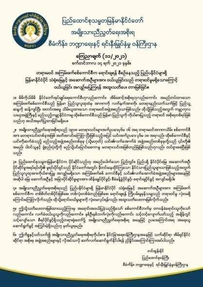 ယခုကဲ့သို့ သတိပေးတားမြစ်ထားသည့်ကြားက အရောင်းအဝယ်ပြုလုပ်ခဲ့ပါက ရောင်းသူနှင့် ဝယ်သူနှစ်ဦးလုံးကို သင့်တင့်လျောက်ပတ်သည့် အချိန်တွင် အမျိုးသားညီညွတ်ရေးအစိုးရအနေဖြင့် ဥပဒေကြောင်းအရ အရေးယူဆောင်ရွက်မည်ဟုလည်း NUG ထုတ်ပြန်ချက်ထဲတွင် ထည့်သွင်း ဖော်ပြထားသည်။