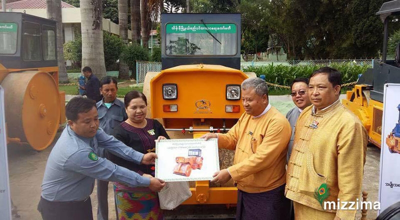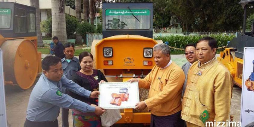 ရှမ်းပြည်နယ် ၁၂ မြို့အတွက် လမ်းကြိတ်စက် နှင့် အမှိုက်သိမ်းယာဉ် ၁၂ စီးကို ပေးအပ်