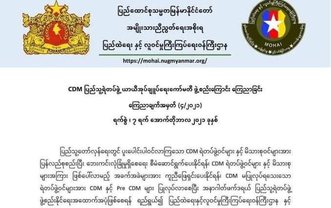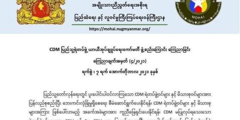 CDM ပြည်သူ့ရဲတပ်ဖွဲ့ ယာယီအုပ်ချုပ်ရေးကော်မတီဖွဲ့စည်းကြောင်း NUG ထုတ်ပြန်
