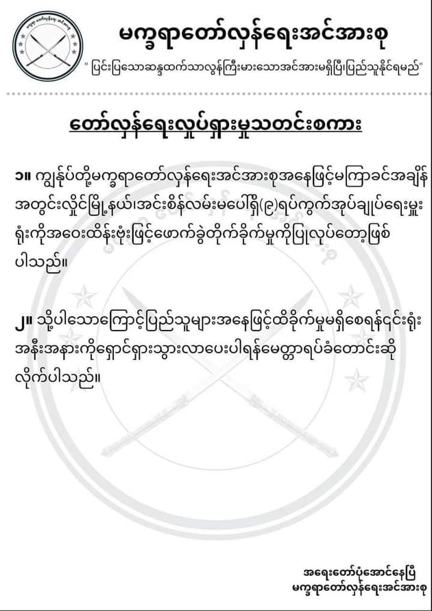 အဆိုပါပေါက်ကွဲမှုမတိုင်မီ တစ်နာရီခန့်အလိုက မက္ခရာတော်လှန်ရေးအင်အားစုက အဆိုပါရပ်ကွက်ရုံးအား အဝေးထိန်းဗုံးဖြင့် ဖောက်ခွဲမှုပြုလုပ်မည်ဖြစ်သောကြောင့် ပြည်သူများ ရှောင်ရှားကြရန် လူမှုကွန်ရက်စာမျက်နှာမှတစ်ဆင့် ထုတ်ပြန်ကြေညာထားသည်။