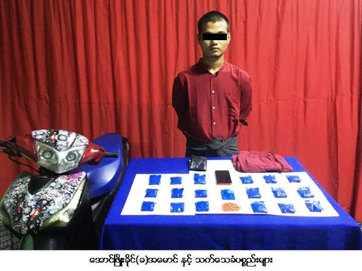 ကာလပေါက်ဈေး တန်ဖိုးငွေကျပ် ၁၁၄ သိန်းခန့် မူးယစ်ဆေးဝါးလက်ဝယ်တွေ့ရှိသူ အောင်ဖြိုးခိုင် (ခ) အမောင်အား မူးယစ်ဆေးဝါးနှင့် စိတ်ကို ပြောင်းလဲစေသော ဆေးဝါးများဆိုင်ရာဥပဒေအရ အရေးယူထားကြောင်း သိရသည်။