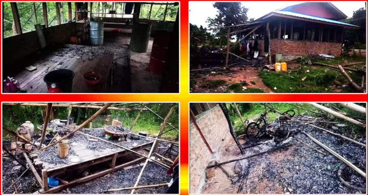 ပုံစာ- စက်တင်ဘာလ ၂၄ ရက်နှင့် ၂၅ ရက်နေ့က သထုံခရိုင်၊ သထုံမြို့နယ်၊ ဝီရောကျေးရွာအုပ်စု၊ ထုံးဘိုလေးရွာရှိ ရွာဆီဆိုင်၊ ဆိုင်ကယ်ပြင်ဆိုင်နှင့် လူနေအိမ်အချို့ကို မီးရှို့ဖျက်ဆီးခံခဲ့ရသည့်ပုံများဖြစ်သည်။