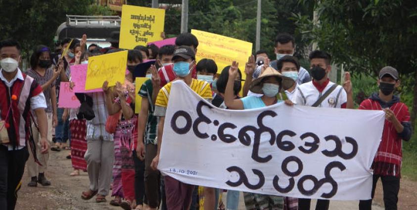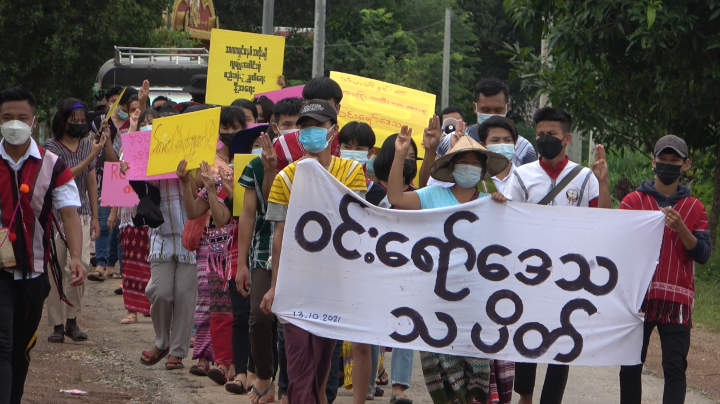ဆန္ဒထုတ်ဖော်ပွဲတွင် မိမိတို့၏ အခွင့်အရေးပြန်လည်ရရှိရန်၊ ပြည်သူ့အာဏာ ပြည်သူလက်ထဲပြန်ပေးရန်နှင့် ဒေသအတွင်း စစ်ကောင်စီတပ်များ ထွက်သွားပေးရန် စသည်တို့ကို ကြွေးကြော်ဆန္ဒထုတ်ဖော်ခဲ့ကြသည်။