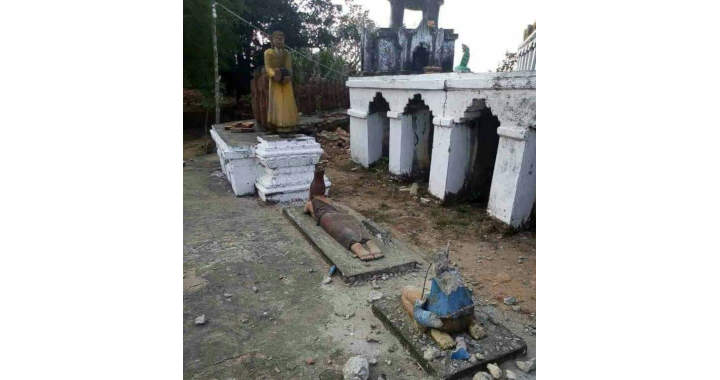 ရခိုင်ပြည်နယ်၊ ဘူးသီးတောင်မြို့နယ်၊ စံကိုးတောင်ကျေးရွာတွင် တည်ရှိသည့် ရှေးဟောင်းသမိုင်းဝင် သုံးဆယ့်တစ်ဘုံဘုရားမှာ တိုက်ပွဲကာလအတွင်းက ပျက်စီးမှုများရှိခဲ့ကြောင်း သိရသည်။
