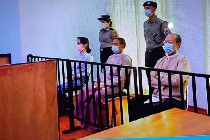 လက်ရှိအချိန်တွင် အသက် ၇၆ နှစ်အရွယ် နိုင်ငံတော်၏အတိုင်ပင်ခံမှာ တရားစွဲဆိုခံသည့်အမှု ၁၁ မှုရှိနေပြီး တပတ်လျှင်ရုံချိန်း လေးရက်တရားရင်ဆိုင်နေရကာ သမ္မတ ဦးဝင်းမြင့်အနေဖြင့် တပတ်လျှင် နှစ်ရက် တရားရင်ဆိုင်နေရသည်။