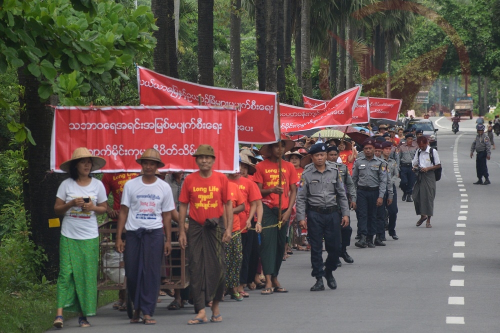 မွန်ပြည်နယ်၊ ပေါင်မြို့နယ်၊ ဥတ္တံတားကျေးရွာရှိ Long Life Aggregate Mining Co.Ltd ကျောက်မိုင်း ဖျက်သိမ်းပေးရေး ဒေသခံ ၃၀၀ ကျော်က ဇွန်လ ၁၂ ရက်တွင် ကျောက်မိုင်းကုမ္ပဏီသို့ တတိယအကြိမ် ချီတက်လမ်းလျှောက်ပြီး ထပ်မံဆန္ဒပြခဲ့သည်။
