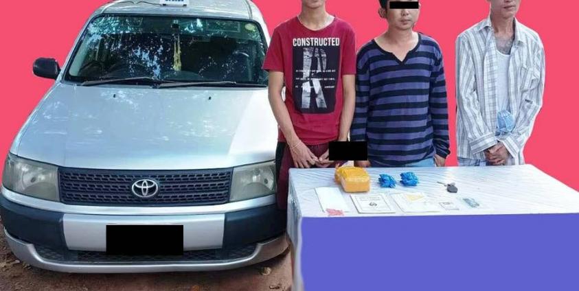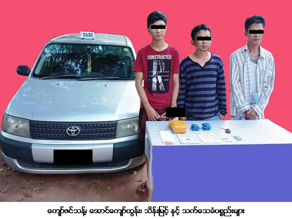 ကျော်ဇင်သန့် (၁၈) နှစ်၊ အောင်ကျော်ထွန်း (၃၄) နှစ်နှင့် သိန်းမြင့် (၅၅) နှစ်တို့အား မူးယစ်ဆေးဝါးနှင့် စိတ်ကိုပြောင်းလဲစေသော ဆေးဝါးများဆိုင်ရာ ဥပဒေအရ အရေးယူထားသည်။