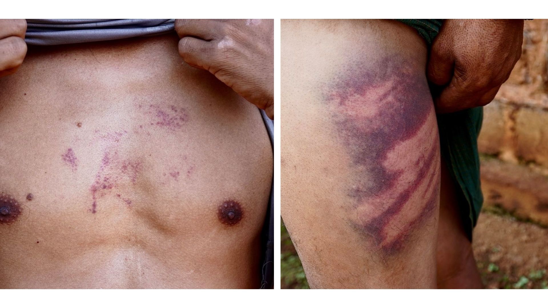 “သူတို့ရိုက်တာ အသားတွေတောင် ညိုမဲတယ်။ တယောက်တော့ နံရိုးကျိုးသွားသလို ခံစားရတယ်တဲ့။ သူ့ကို ဆေးရုံခေါ်သွားပြီး ဓာတ်မှန်ရိုက်ရအုံးမယ်။ သူတိုခြေထောက်နဲ့ကန်တော့ ဗိုက်နားထိသွားလို့ထင်တယ်။ မထနိုင်သေးဘူးလို့ပြောတယ်” ဟု ပန်လောဒေသခံက ပြောသည်။
