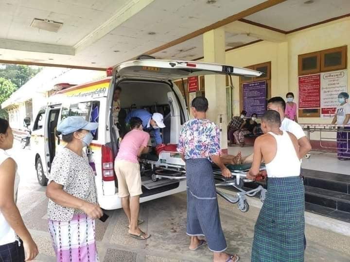 ပစ်သတ်ခံရသည့် ကိုချစ်စမ်းမောင်အား ဘိုကလေးဆေးရုံသို့ ပို့ဆောင်စဥ်