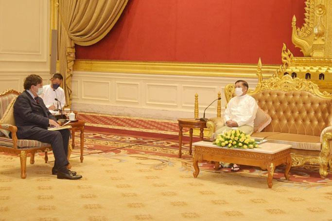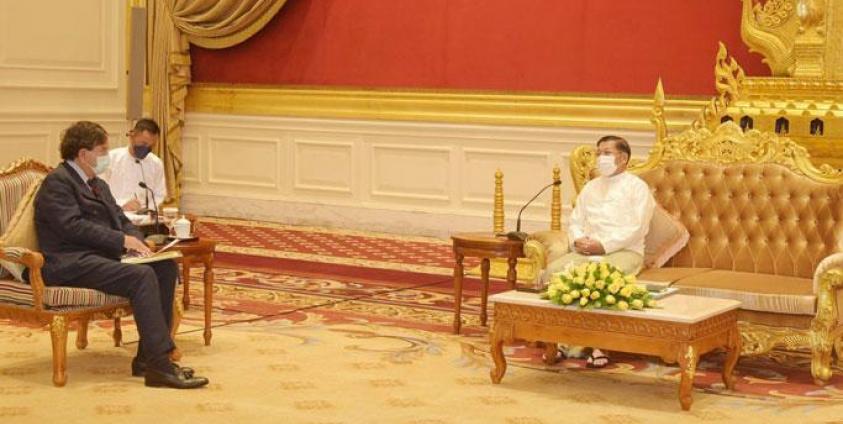 အမျိုးသား ဒီမိုကရေစီအဖွဲ့ချုပ် (NLD) အစိုးရ လက်ထက် ရခိုင်ပြည်နယ်ဆိုင်ရာ အကြံပေး အဖွဲ့ဝင်ဟောင်း မစ္စတာဘီလ်ရစ်ချတ်ဆန်နှင့် အာဏာသိမ်း စစ်အုပ်စုခေါင်းဆောင် မင်းအောင်လှိုင်တို့ ယနေ့ နိုဝင်ဘာလ ၂ ရက် မနက်ပိုင်း အချိန်တွင် နေပြည်တော်ရှိ သံတမန်ဆောင်ဧည့်ခန်းမ၌ တွေ့ဆုံခဲ့ကြသည်ဟု စစ်ကောင်စီက သတင်းထုတ်ပြန်သည်။