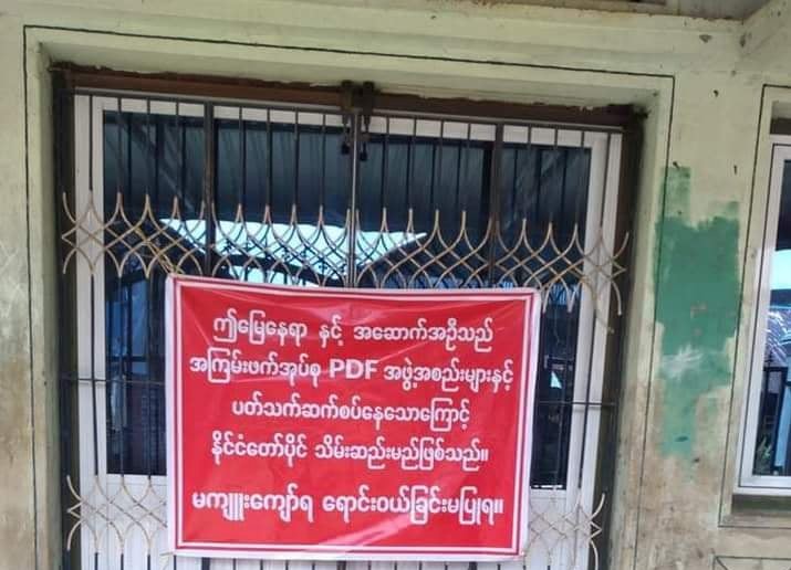 စစ်ကောင်စီတပ်ဖွဲ့များ လာကပ်သည့် စာထဲတွင် “ဤမြေနေရာနှင့် အဆောက်အဦသည် အကြမ်းအဖက်အုပ်စု PDF အဖွဲ့အစည်းနှင့် ပတ်သက်ဆက်စပ်နေသောကြောင့် နိုင်ငံတော်ပိုင်အဖြစ် သိမ်းဆည်းမည်ဖြစ်သည်။ မကျူး ကျော်ရ။ ရောင်းဝယ်ခြင်းမပြုရ“ ဟု ရေးသားထားသည်။