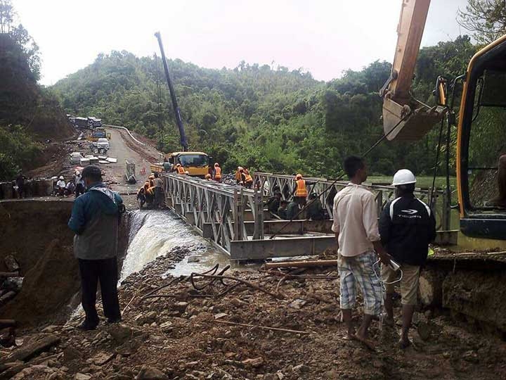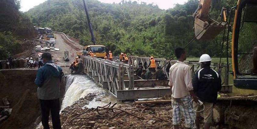 ရေတိုက်စား၍ ပျက်စီးသွားသော ကားလမ်းတွင် ပေ ၉၀ ဘေလီ တံတားကို အစားထိုး တည်ဆောက်နေခြင်း ဖြစ်ကြောင်း သိရသည်။