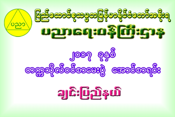 ယခုနှစ်အတွက် အောင်ချက်အကောင်းဆုံးမှာ- မွန်ပြည်နယ်ဖြစ်ပြီး၊ ဖြေဆိုသူ (၂၂၀၀၀) ကျော်တွင် (၉၀၀၀) ကျော်အောင်မြင်ခဲ့ကာ၊ အောင်ချက်ရာခိုင်နှုန်း (၄၁) ရာခိုင်နှုန်းဖြစ်သည်။