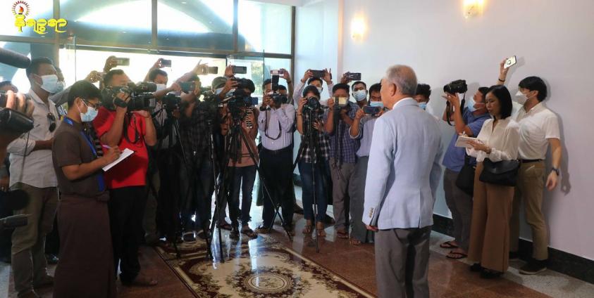 “ကျနော်တို့နဲ့အထူးအထွေပြောဆိုဖြစ်ခဲ့တာမရှိပါဘူး။ မိတ်ဆက်ရုံနဲ့တင် အချိန်က ကုန်သွားတယ်။ ကျနော်တို့ဘက်ကလည်း ဘာမှ တင်ဖို့ မရလိုက်ဘူး။ အချိန်က ၁၅ မိနစ်လောက်ပဲ တွေ့ခွင့်ရတာ”ဟု ပြည်နယ်ကောင်စီပြောခွင့်ရသူ ပြည်နယ်ဥပဒေချုပ်ဦးလှသိန်းက သတင်းထောက်များကို ပြောသည်။