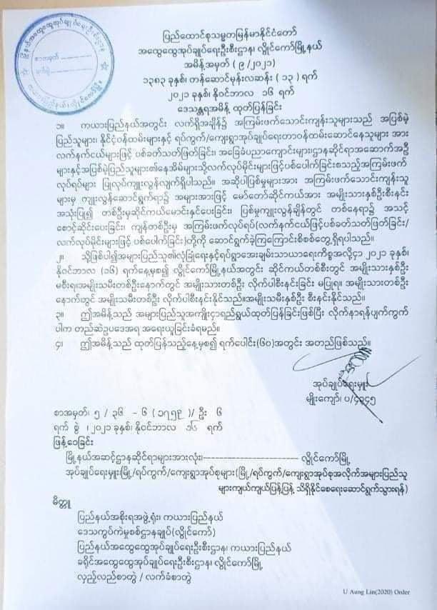 အမိန့်ထုတ်ပြန်ချက်ကို ဒီကနေ့ နိုဝင်ဘာလ ၁၇ရက်နေ့ နံနက်ပိုင်းအထိ ရပ်ကွက်အတွင်း မြို့တွင်း လိုက်လံအသိပေးကြေညာတာမရှိသေးဘူးလို့ မြို့ပေါ်ရပ်ကွက်နေသူတွေ ပြောပါတယ်။