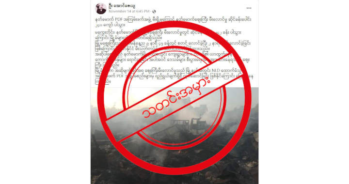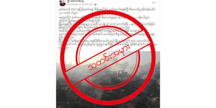 နတ်မောက်မြို့မစျေးကို နတ်မောက် PDF က မီးရှို့လိုက်တယ်ဆိုတဲ့ သတင်းတစ်ခု ကို ဦးအောင်ဇေယျဆိုသူက နိုဝင်ဘာလ ၁၄ ရက်နေ့မှာ Facebook လူမှုကွန်ရက် စာမျက်နှာမှာ ရေတင် ထားတာကို တွေ့ရပါတယ်။