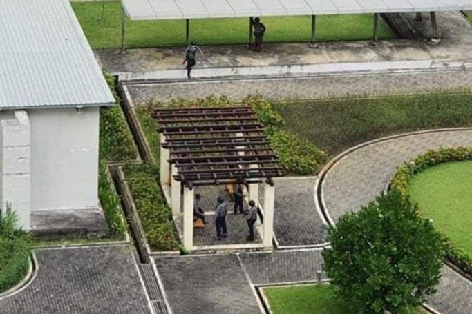 "အင်အားတော်တော် များပါတယ်။ Double Cap ကိုးစီး၊ ရဲကားအကြီး နှစ်စီးနဲ့ပေါ့၊ စစ်သားများတယ်၊ ရဲနဲတယ်။ အခန်းတစ်ခန်းထဲတော့ ဝင်သွားတယ်။ လူလာရှာတာ ဖြစ်နိုင်တယ်"ဟု ၎င်းက ပြောသည်။