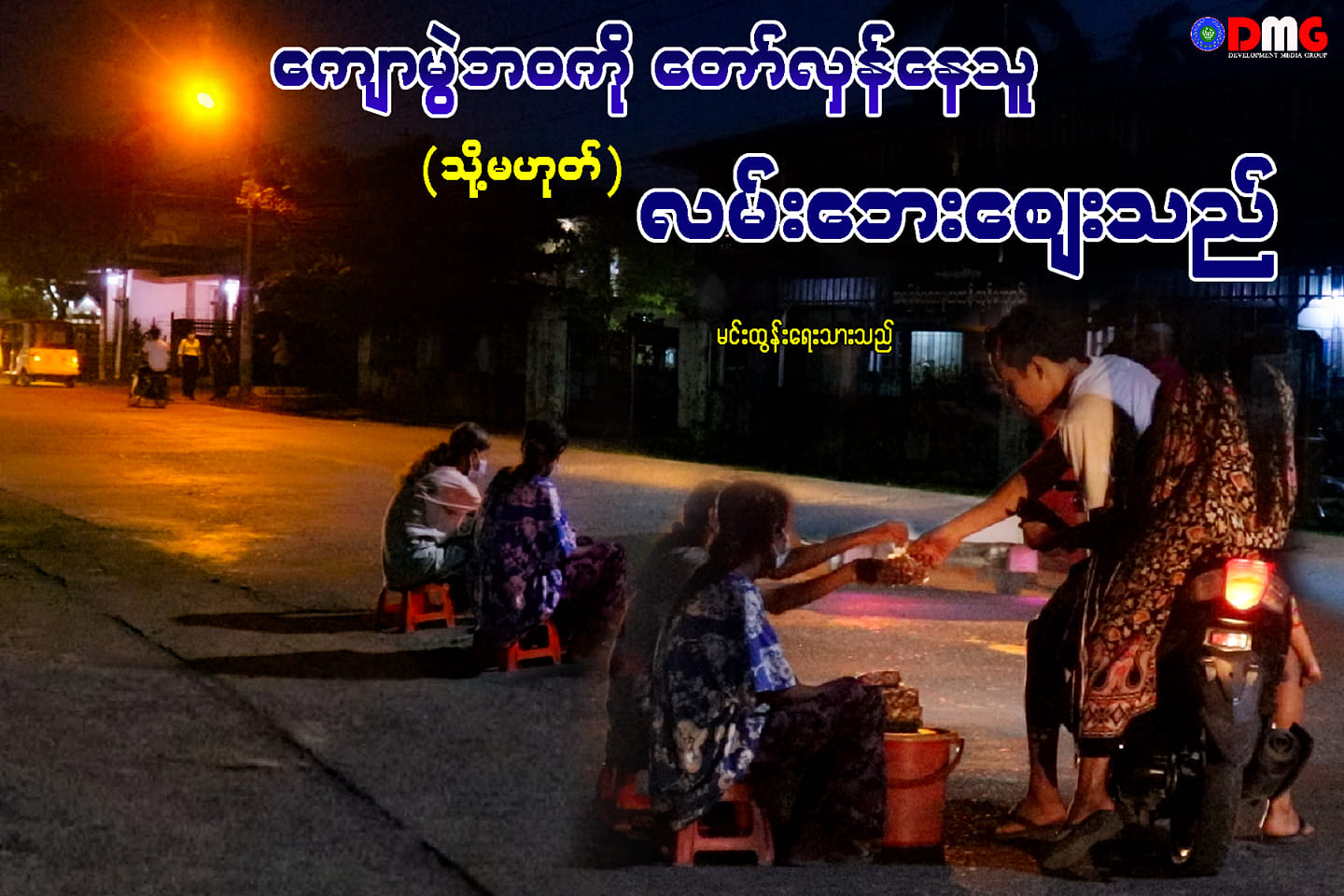 ထိုအမျိုးသမီးနှစ်ဦးမှာ စစ်တွေမြို့ ဒုံးတိုက်ကွင်းရပ်ကွက်တွင်နေထိုင်သည့် အသက်(၅၇)အရွယ် ဒေါ်ဦးသိန်းခင်နှင့် အသက်(၄၃)နှစ်အရွယ် ဒေါ်ရီရီဝင်းတို့ ညီအစ်မနှစ်ဦးဖြစ်ကြသည်။ တစ်ပေကျော်သာသာရှိသော သစ်သားစားပွဲခုံ ပေါ်တွင် မြေပဲလှော်များကို ပလက်စတစ်အိတ်ကလေးများဖြင့် အစီအရီထုတ်ကာ ရောင်းချနေခြင်းဖြစ်သည်။ ပလက်စတစ်ထိုင်ခုံငယ်ပေါ်ထိုင်ရင်း မြေပဲလှော်လာဝယ်မည့်သူများကို ဒေါ်ဦးသိန်းခင်တို့ညီအစ်မ ငေးမျှော်နေကြပေသည်။
