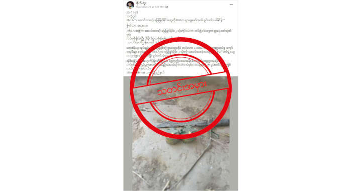 ဘာဖြစ်လို့လဲဆိုတော့ အိုက်တူးဆိုသူ အသုံးပြုထားတဲ့ ဓာတ်ပုံထဲမှာပါတဲ့ မိုင်းတွေဟာ KNLA က ထောင်ထား တဲ့ မြေမြုပ်မိုင်းတွေ မဟုတ်ပဲ စစ်ကောင်စီ လက်အောက်ခံ BGF တပ်ဖွဲ့တွေ ထောင်ထားတဲ့ မြေမြုပ်မိုင်း ၂ လုံး ကို KNLA တပ်ရင်း ၁ က တူးဖော်ရရှိခဲ့တယ်ဆိုတဲ့ KNU ရဲ့ သတင်းထုတ်ပြန်ချက်ကို စာသား ပြောင်းကာ ပြန် လည်ရေးသားထားလို့ပဲဖြစ်ပါတယ်။