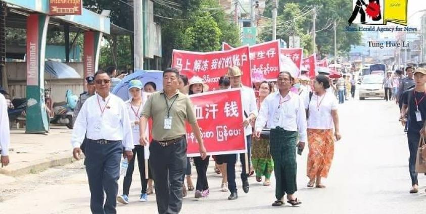 “သစ်သီးကုန်သည်တွေ ပဲပြောင်းနှမ်းကုန်သည်တွေပေါ့ ဘဏ်စာအုပ်အပိတ်ခံရတာ။ သူတို့ကို ဦးဆောင်ဆန္ဒပြတာက ပဲ၊ပြောင်း၊နှမ်းကုန်သည်ကြီးများဥက္ကဌ ဦးလှမောင်။ အခု ပိတ်သိမ်းမှုကြောင့် မြန်မာနိုင်ငံဘက်က လူထုရဲ့ ဘဏ်စာရင်းကနေ ငွေကြေးဆုံးရှုံးမှုက ကျပ်သန်းပေါင်း ၄ သိန်း လောက်ရှိမယ်လို့ သိရတယ်။ ဒါမျိုးပိတ်သိမ်းတာဟာ အခုဆိုရင် ဒုတိယအကြိမ် သိမ်းတာဖြစ်တယ်။ စာအုပ်အရေအတွက်နဲ့ငွေကြေးအရေအတွက်များပြားလို့ လူထုဆန္ဒပြကြတာ ဖြစ်တယ်။ ပထမအကြိမ်တုန်းက ဆုံးရှုံးမှုသိပ်မများတော့ လူသိပ်မသိဘူးပေါ့။ သူတို့လည်း ၂ နိုင်ငံ ရင်းနှီးမှု ပျက်မှာစိုးလို့ သည်းခံနေလာခဲ့တာ” - ဟု မူစယ်မြို့နေ စိုင်းလိတ်က ပြောသည်။