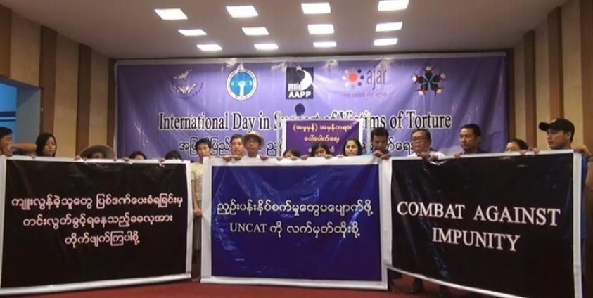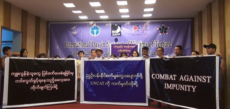 ယနေ့ပြုလုပ်သည့် ညှဉ်းပန်းနှိပ်စက်ခံရသူများအား အားပေးကူညီသည့် နိုင်ငံတကာနေ့ပွဲကို ရန်ကုန်မြို့ တော်ဝင်နှင်းဆီစားသောက်ဆိုင်တွင် ဝိမုတ္တတိ အမျိုးသမီးအဖွဲ့ (VWO)၊ နိုင်ငံရေးအကျဉ်းသားများ ကူညီစောင့်ရှောင့်ရေးအသင်း(AAPP)၊ အမျိုးသမီးများအဖွဲ့ချုပ် မြန်မာနိုင်ငံ (WLB)၊ လူ့အခွင့်ရေးမှတ်တမ်းကွန်ရက်မြန်မာနိုင်ငံ (ND-Burma)နှင့် အာရှတရားမျှတမှုနှင့်အခွင့်အရေးအဖွဲ့ (AJAR)တို့မှ ပူးပေါင်းပြုလုပ်ခဲ့သည်။
