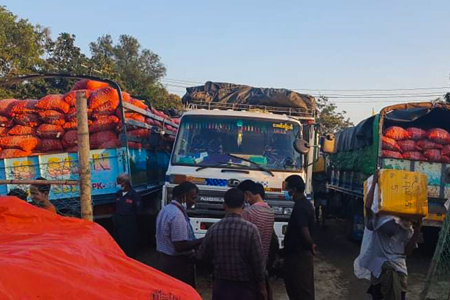 ရခိုင်ပြည်နယ် မောင်တောနယ်စပ်ကုန်သွယ်ရေးစခန်းမှ ဘင်္ဂလားဒေးရှိနိုင်ငံသို့ ကုန်စည်တင်ပို့မှုမှာ ယခင်လများထက် ယခုလ ကုန်စည်တင်ပို့မှုတန်ဖိုး ခြောက်ဆကျော်မြင့်တက်ခဲ့ကြောင်း နယ်စပ်ကုန်သွယ်ရေးစခန်းမှ လက်ထောက်ညွှန်ကြားရေးမှူး ဦးသာထွန်းစိန်က ပြောကြားသည်။