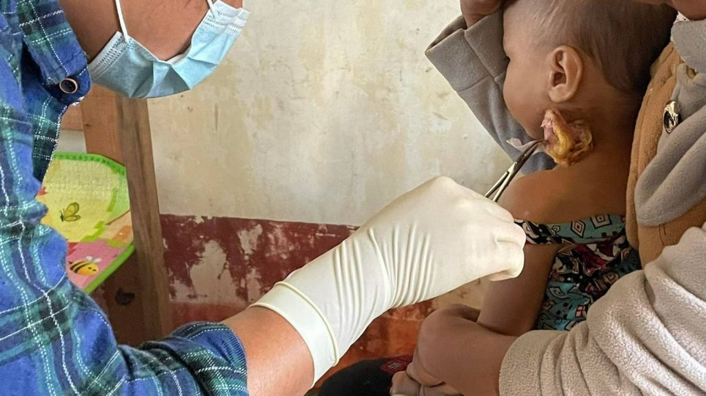 “ကျနော်တို့အဖွဲ့ဝင်တချို့က ကျန်းမာရေးဌာနက CDM လုပ်ထားတဲ့သူတွေပါ၊ တချို့ကလည်း ပြင်ပဌာနကဖြစ်တယ်၊ အခု ဖယ်ခုံမြို့နယ်အတွင်းက စစ်ရှောင်စခန်း တော်တော်များများမှာ ဖျားနေကြတယ်၊ ကလေးရော လူကြီးရော တစ်နေ့ကို ပျှမ်းမျှ ၇၅ ယောက်နှုန်းနဲ့ကုပေးနေရတယ်၊ ဆေးဝါးတွေက လုံလောက်မှု မရှိဘူး” ဟု ဆေးကုသပေးနေသည့် အဖွဲ့ဝင်တစ်ဦးက သျှမ်းသံတော်ဆင့်ကို ပြောသည်။