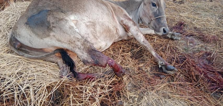 အခင်းဖြစ်ပွားသည့်နေ့က ကျေးရွာအနီးရှိလယ်ကွင်းတွင် နွားရှစ်ကောင်ကိုချည်နှောင်ထားခဲ့ရာမှ နွားငါးကောင်၏ ခြေထောက်များမှာ ဓားဖြင့်ခုတ်ခံထားရခြင်းဖြစ်ကြောင်း နွားပိုင်ရှင် ဦးမောင်စောထွန်းက ပြောသည်။