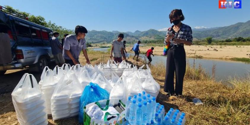 တချို့ အလှူရှင်တွေက ထိုင်းဘက်တာဝန်ရှိသူတွေ ၊ KNU တာဝန်ရှိသူတွေ မချိတ်ဆက်ဘဲ အထောက် အထားမရှိဘဲ စစ်ဘေးရှောင်တွေ ရှိရာနေရာတွေ သွားပြီး လှူကူတာတွေ လုပ်ကိုင်ကြတော့ စစ်ဆေးတာ ဖမ်းဆီးခံရတာတွေ ရှိလာနေတယ်၊ ဒါတွေကြောင့် ကျနော်တို့ မဲ့ကိုကင်းရွာက ကိုယ့်တောင်ယာလုပ်တဲ့ တိုင်းရင်းသားမိသားစုတွေ စုပြီးနေ့စဉ် ချက်ပြုတ်ထုပ်ပိုးပြီး ပို့ပေးနေတယ်။”ဟု ပြောသည်။
